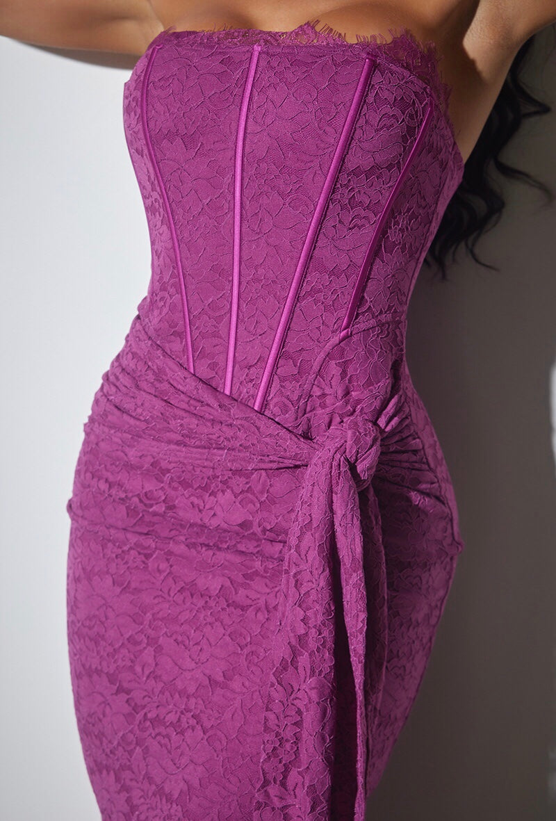 Rhinestone Pearl Lurex Long Sleeve Midi Dress