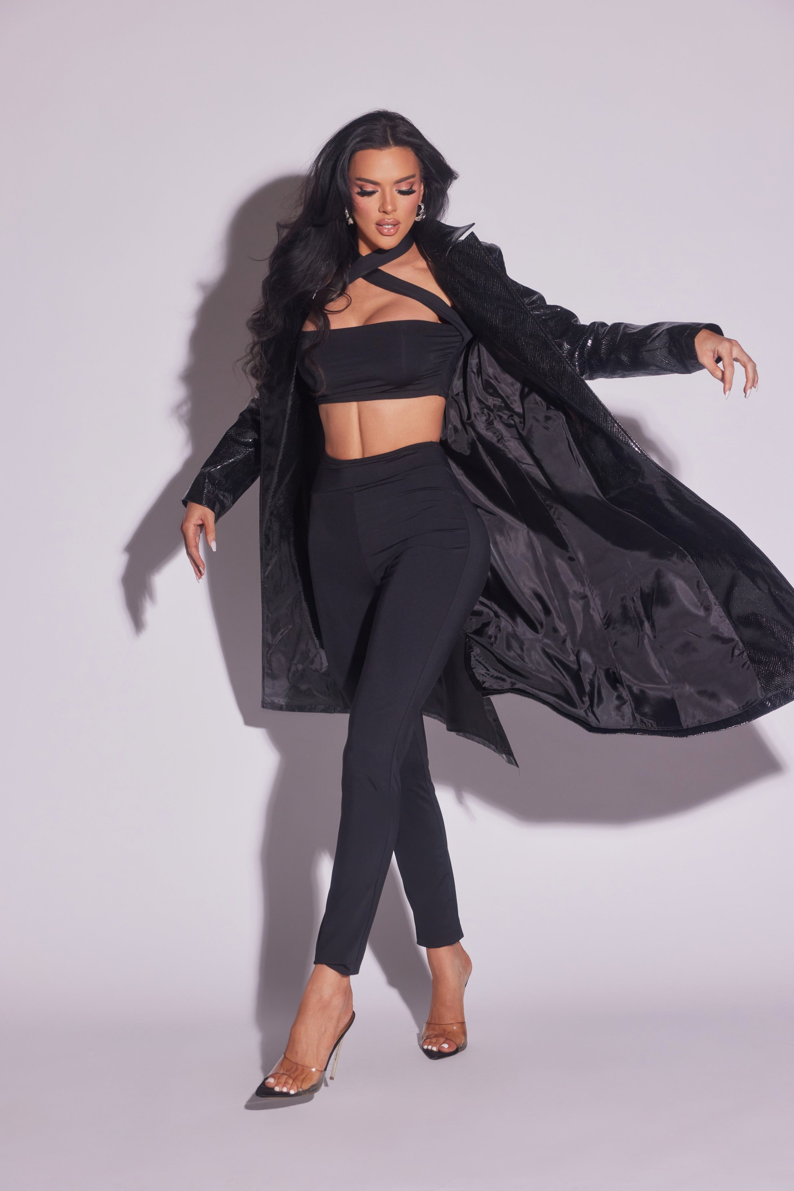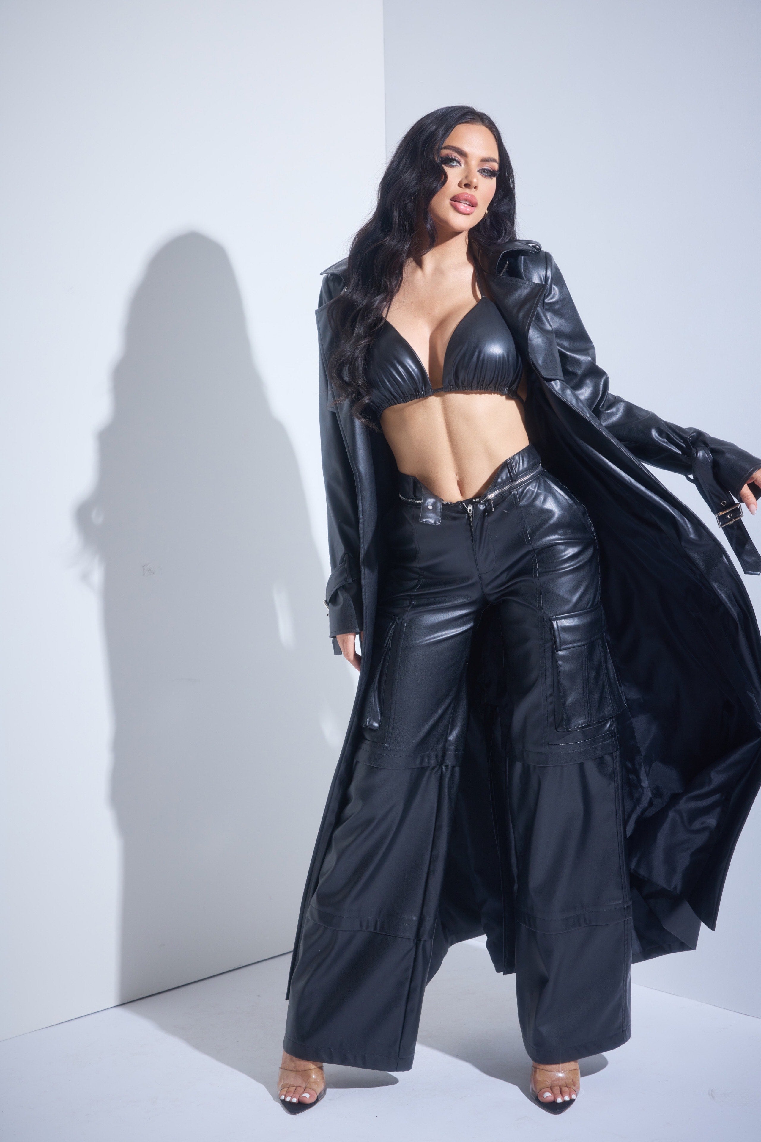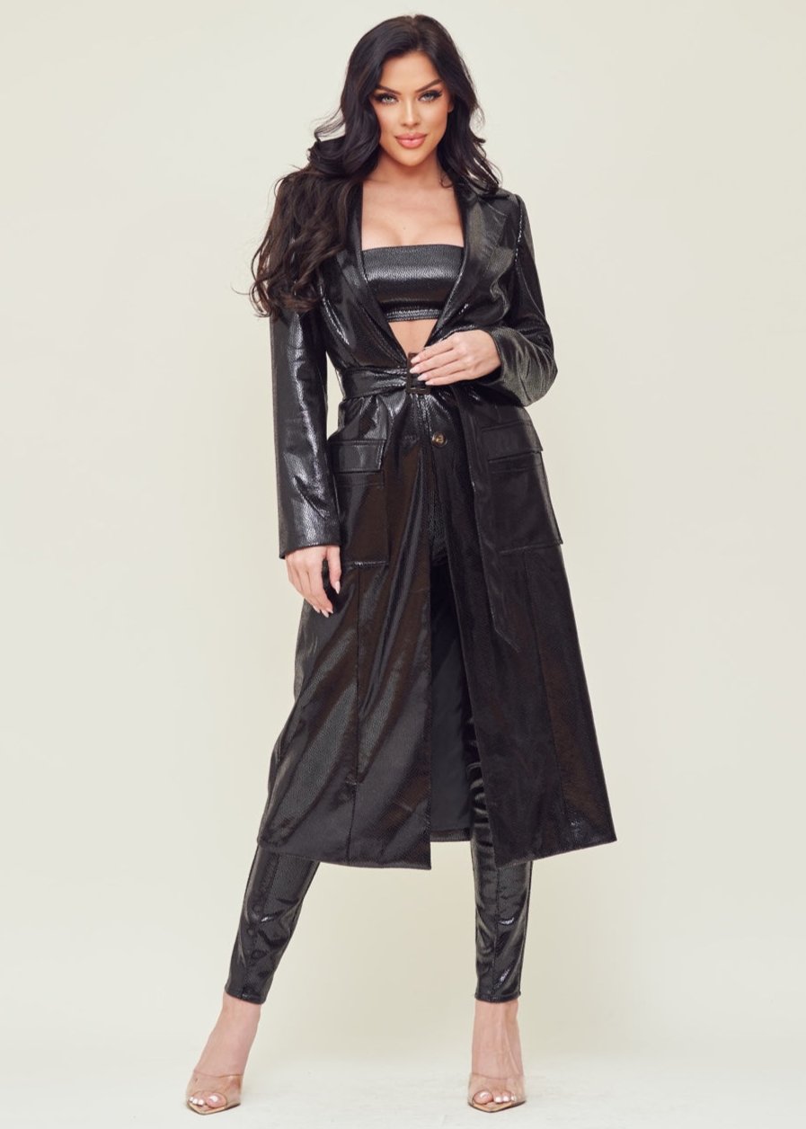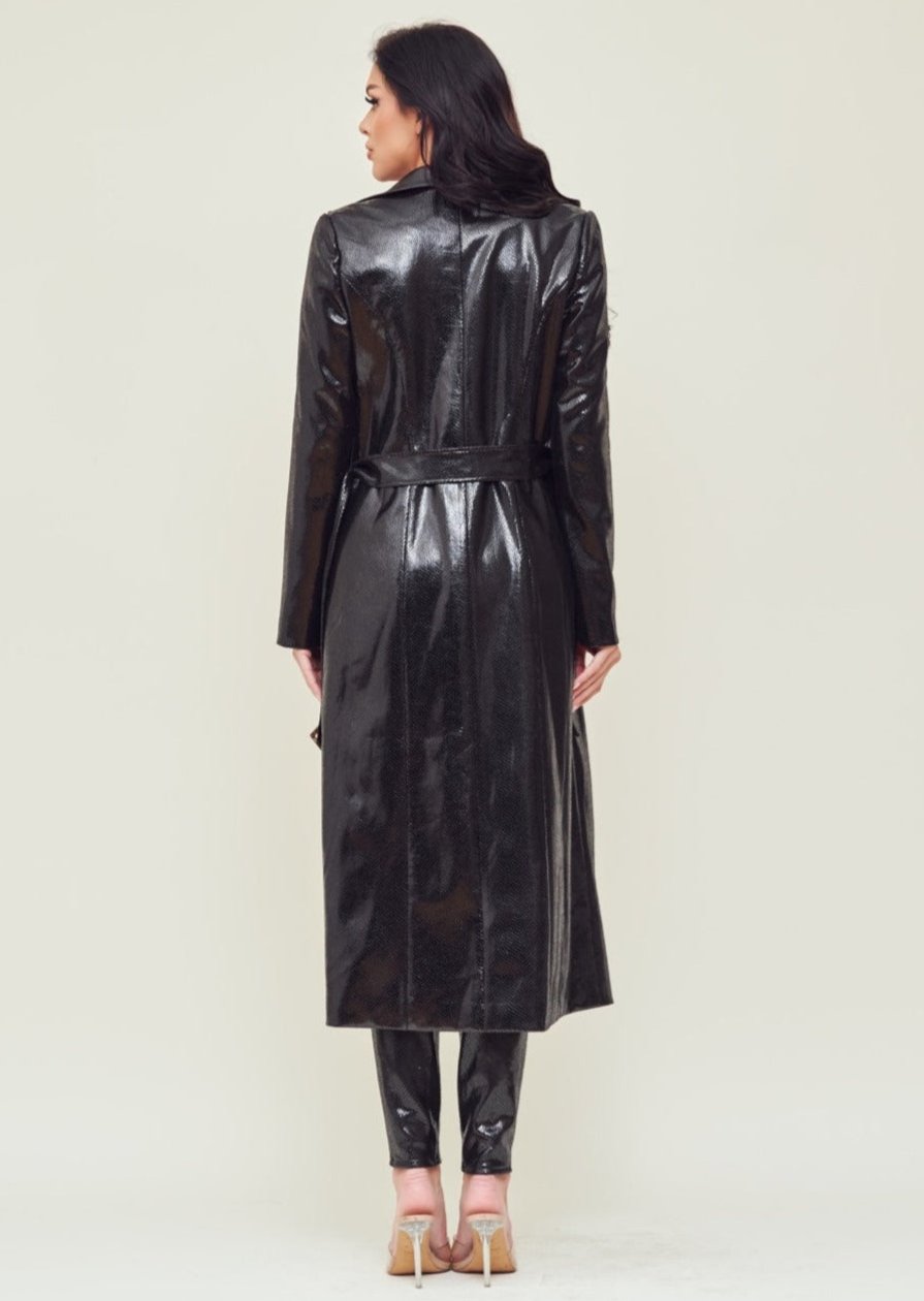Faux Leather Trench Coat