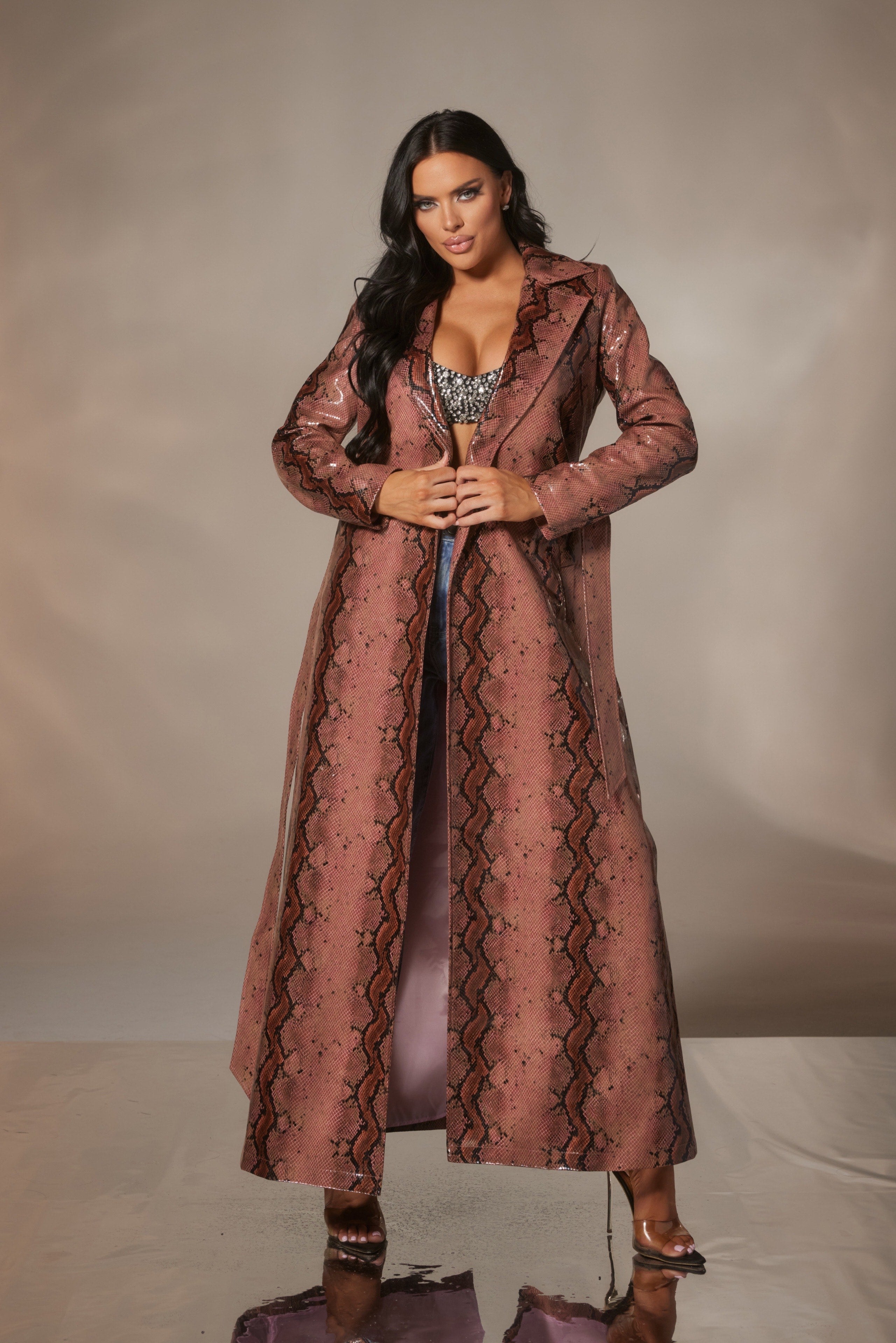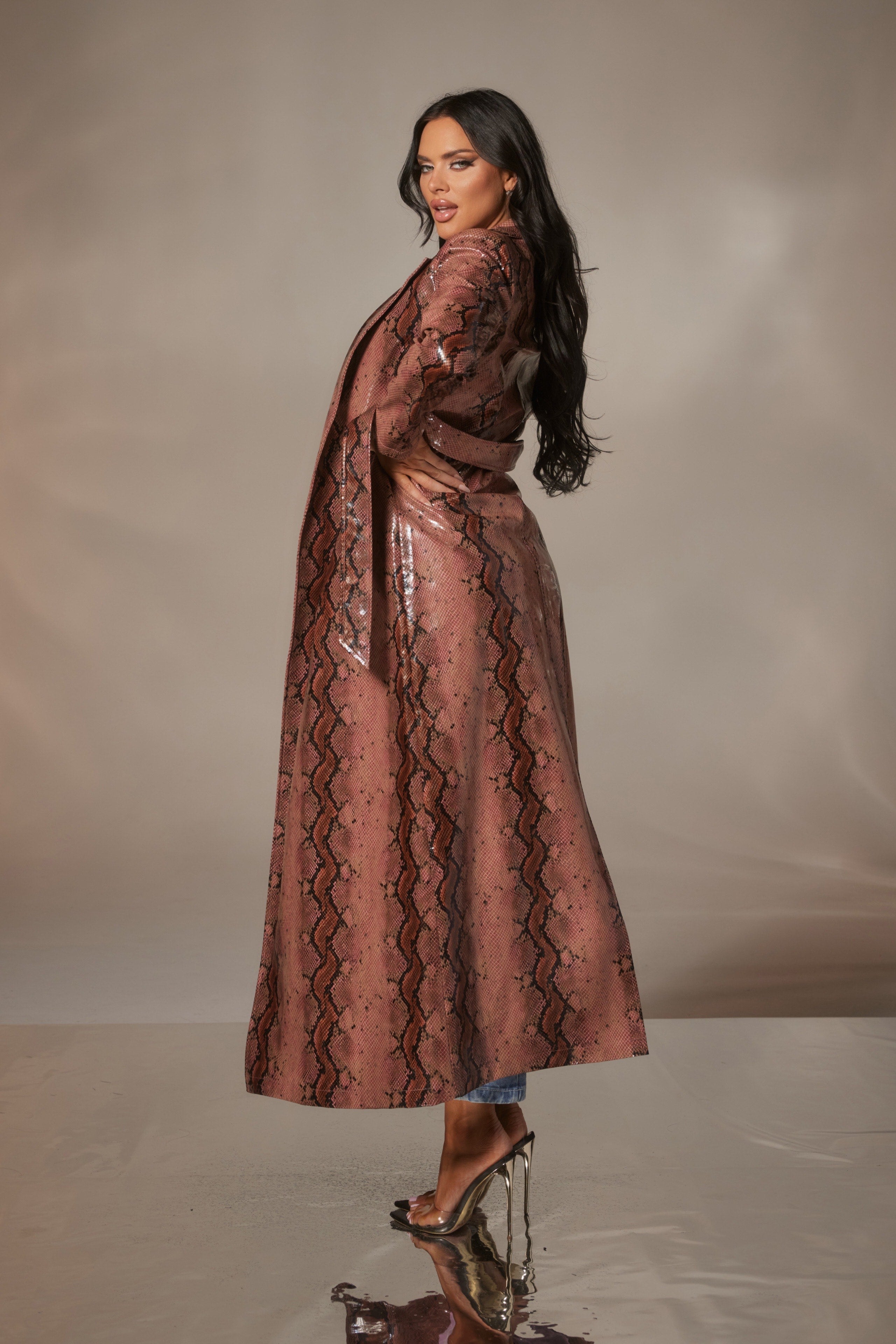 Snake Print Embossed Trench Coat