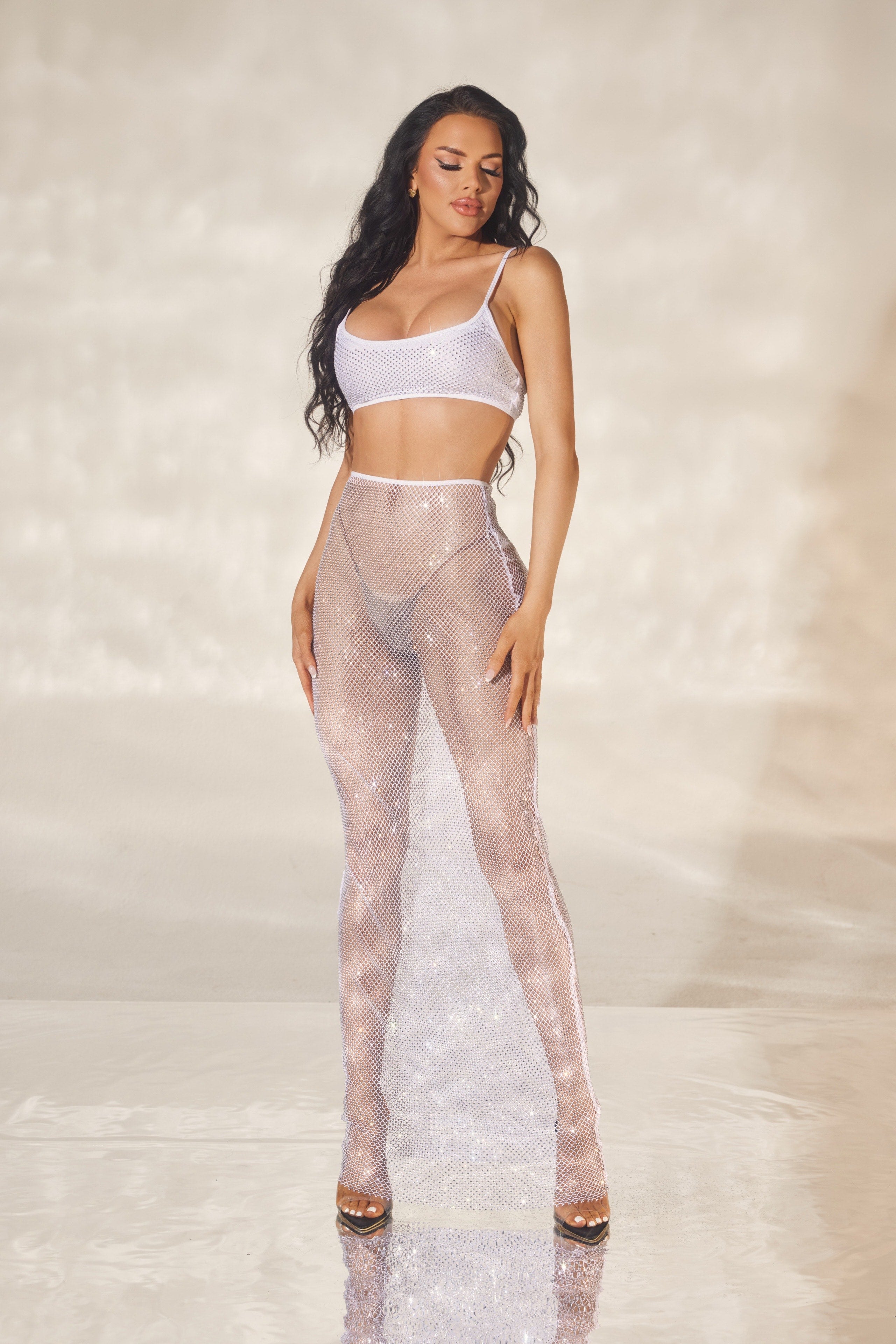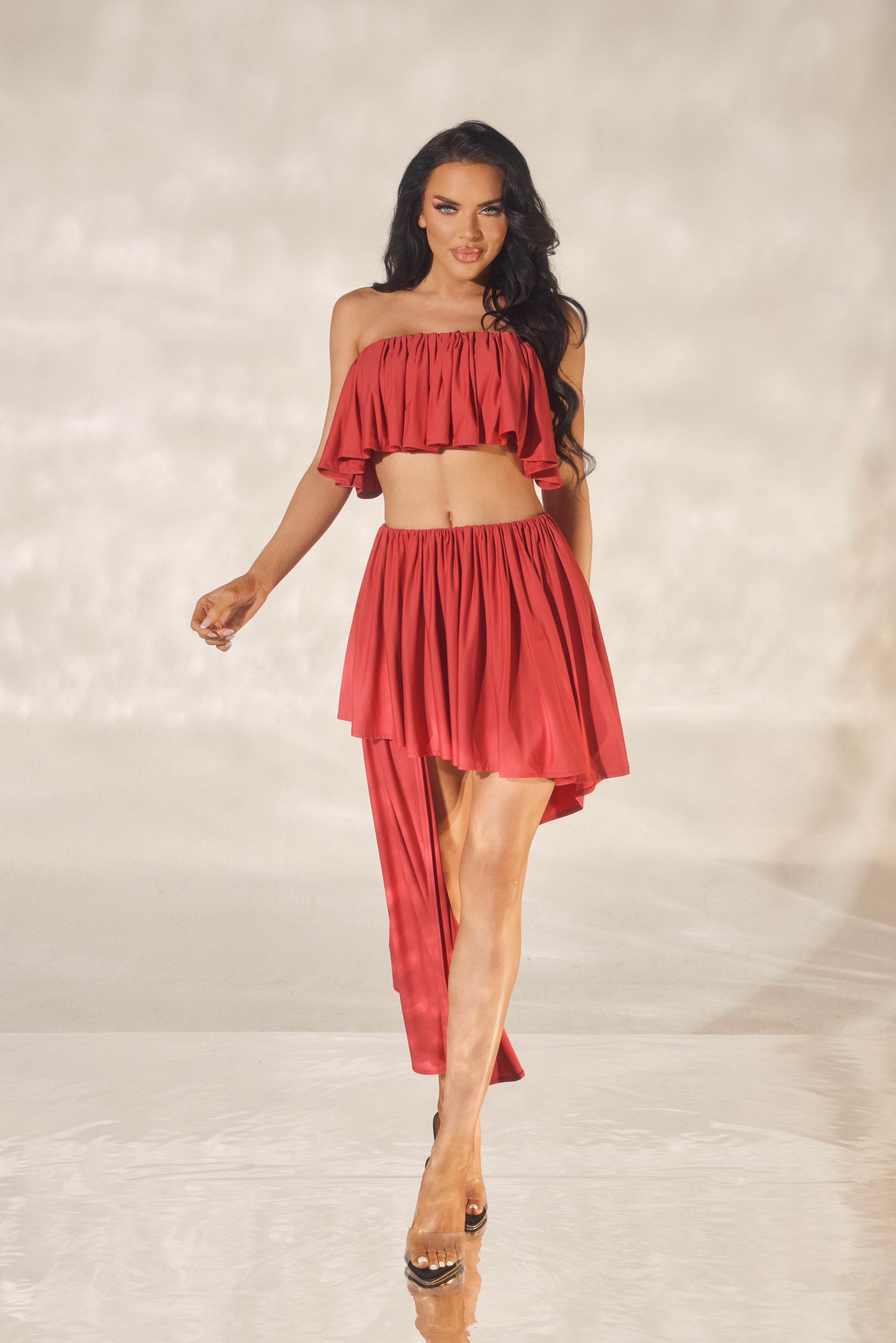 2 Pc Rhinestone Gem Crop and Mini Skirt Set
